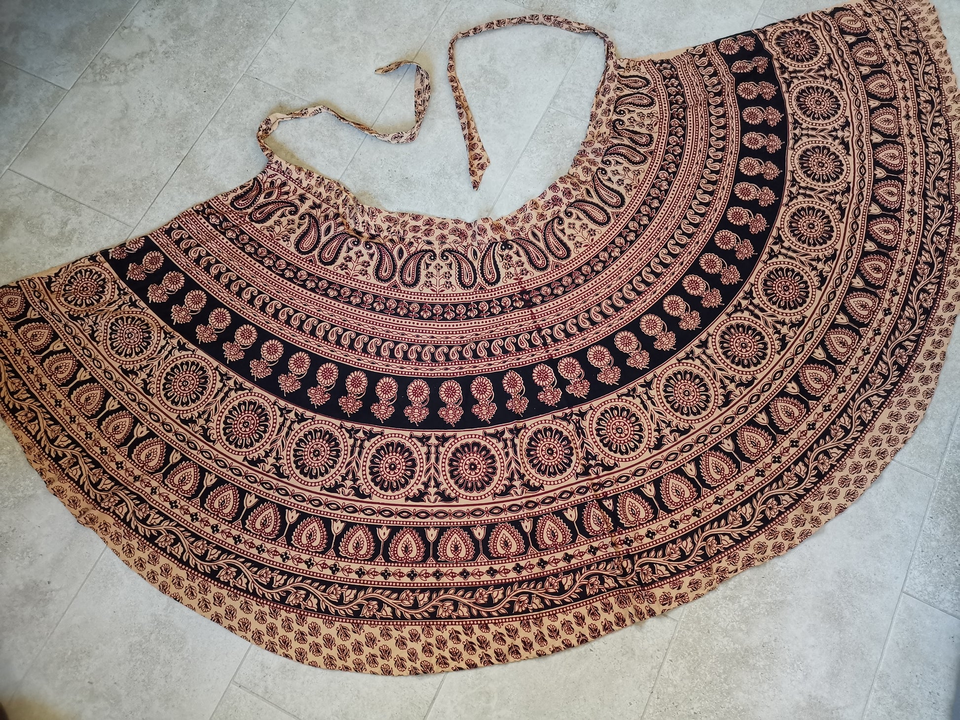 Beautiful Pakistani Paisley flowers/burgundy/black/tan Block print wrap around midi cotton skirt from the 70's 80's S/M/L